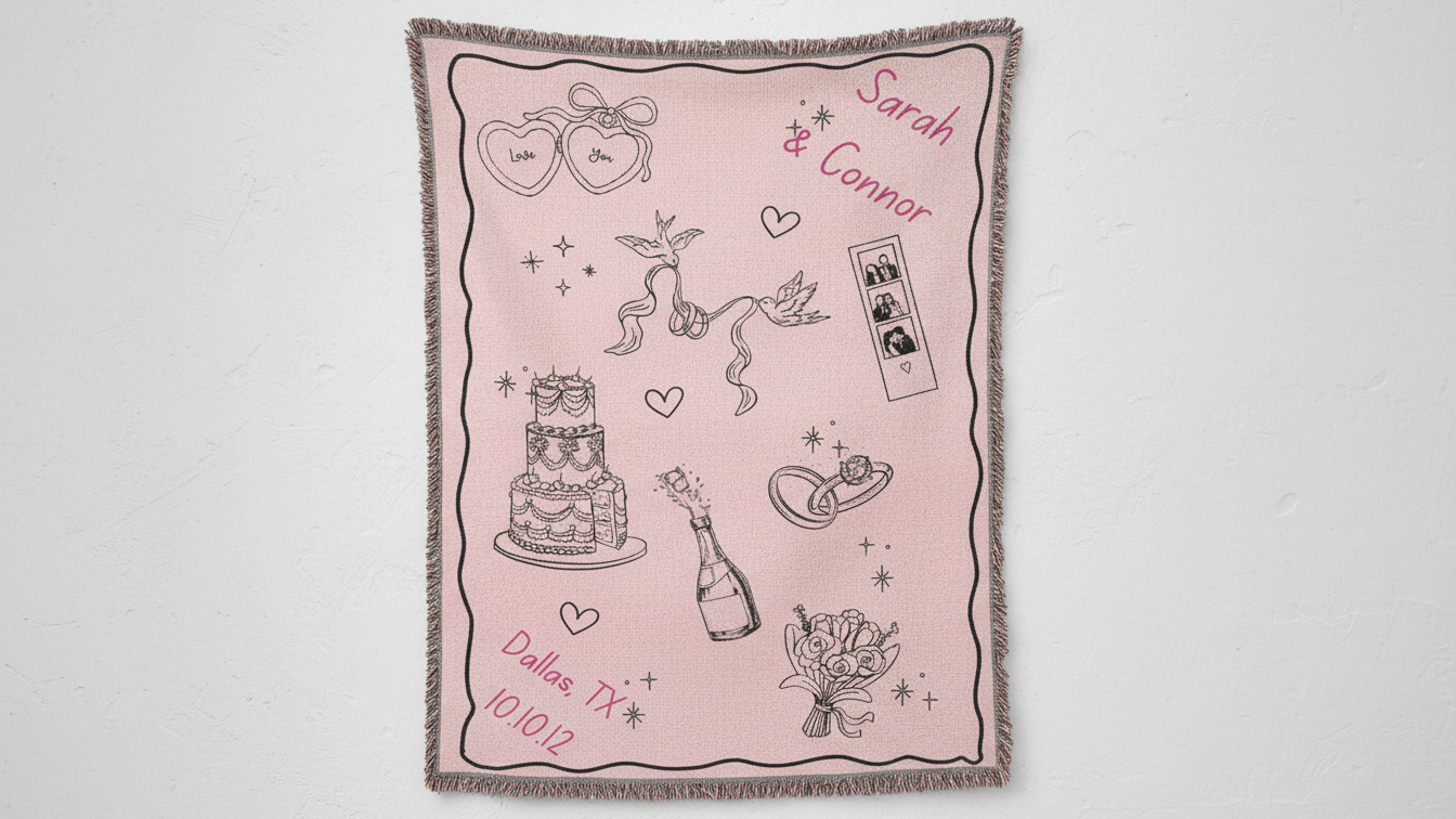 Pastel Wedding Woven Blanket — Cute Desserts & Hearts Throw