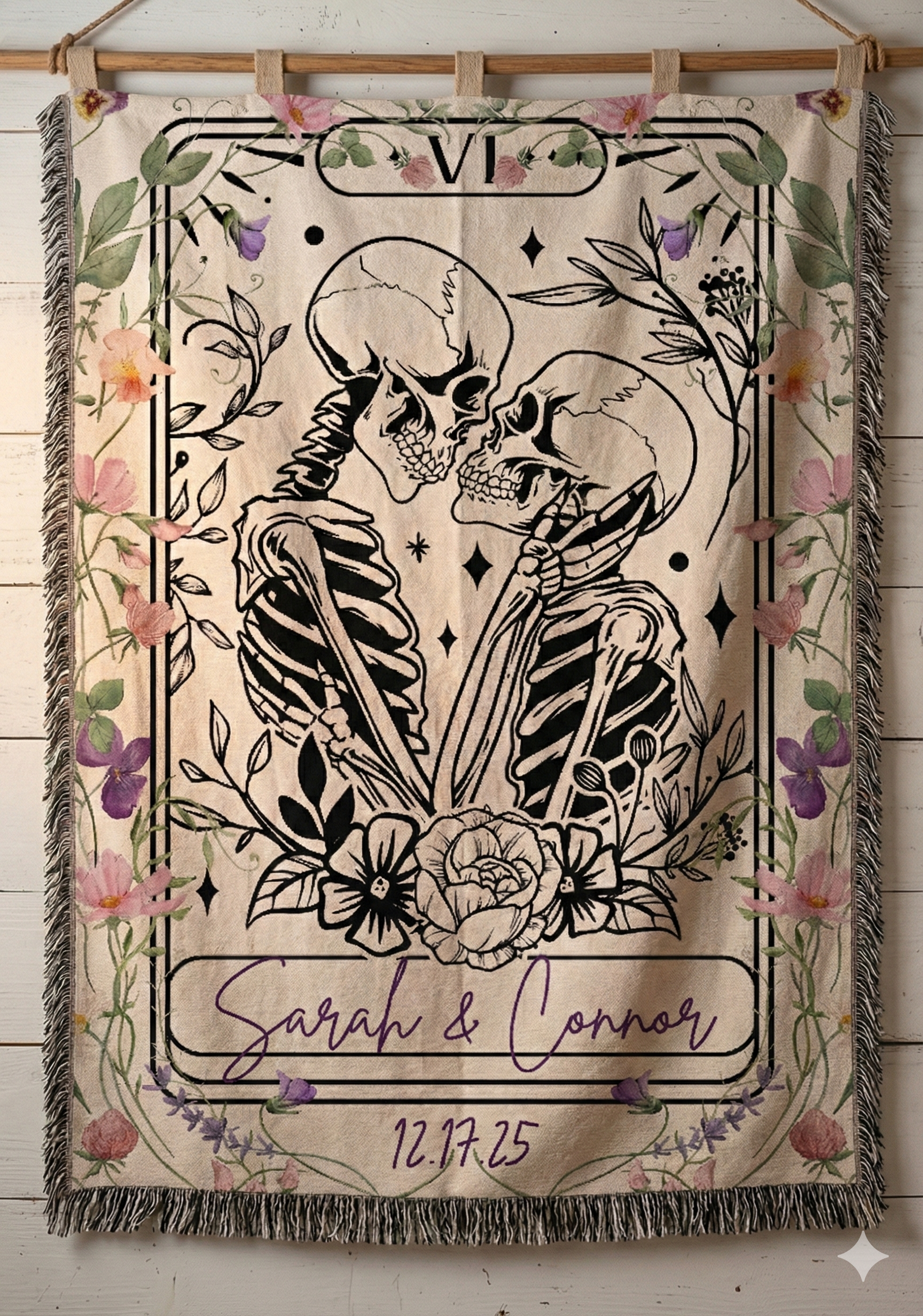 Personalized "The Lovers" Skeleton Tarot Woven Blanket