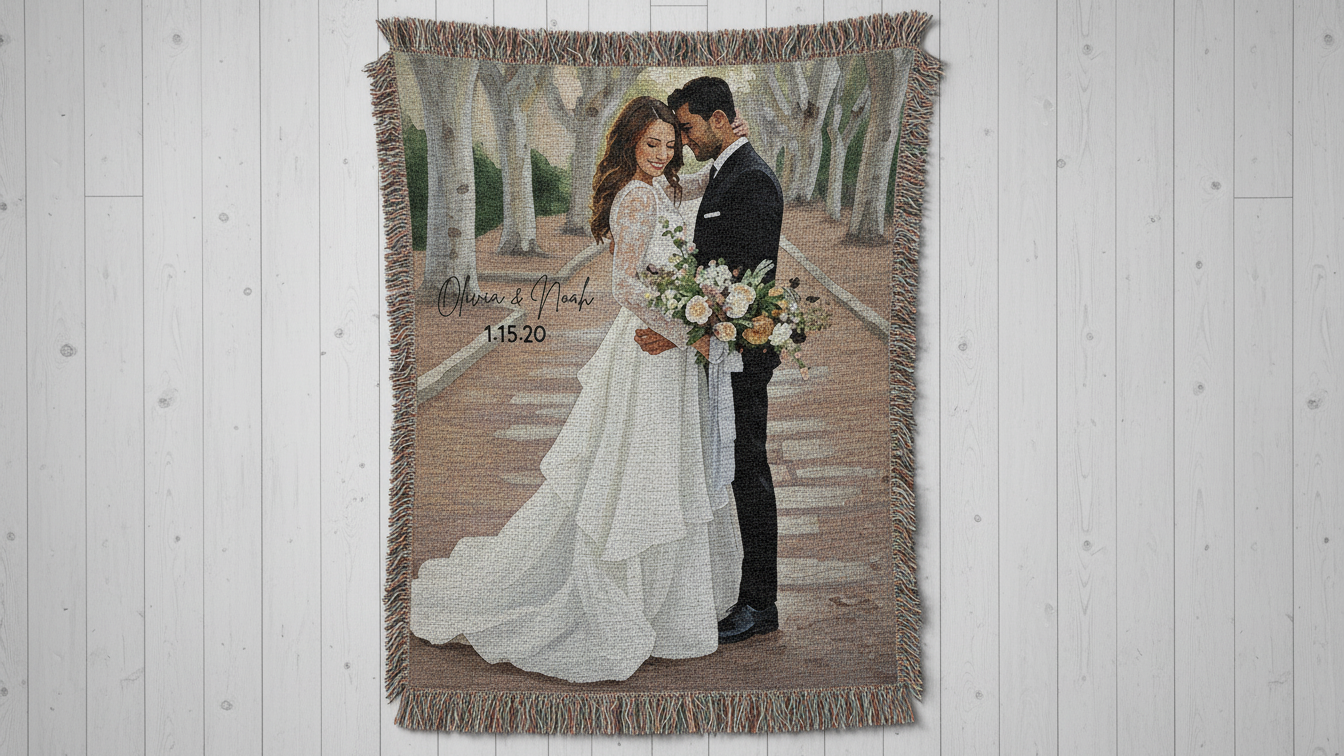 Wedding Photo Woven Blanket — Personalized Bridal Keepsake Throw